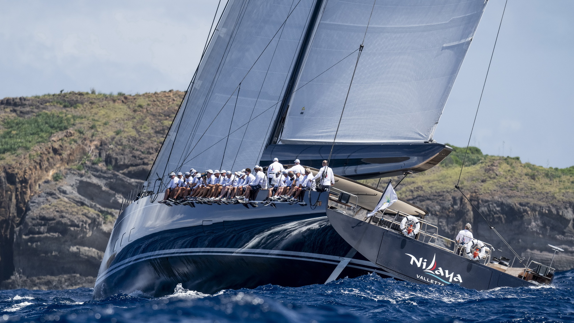 “For such a large yacht, the acceleration is exciting as she rapidly reaches high speeds,” Ingram says. “Twin rudders and the light, positive steering give superb maneuverability and she seems to be reaching all her targets with ease. Rondal’s sailing systems enable fingertip control of the massive loads involved.” At the 2024 St Barth’s Bucket in March, Nilaya proved the point, winning on the third day of racing and finishing third overall in her class in her first ever Bucket regatta.