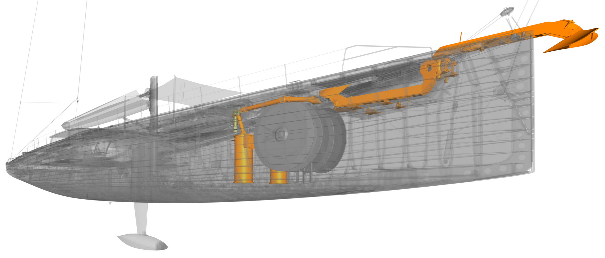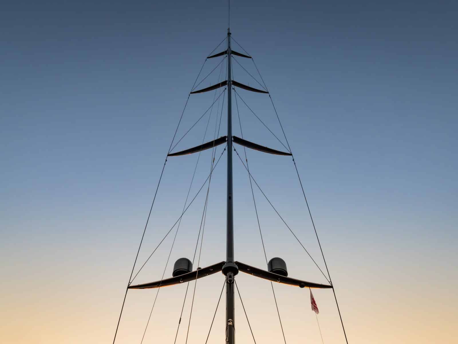 For this task, Rondal created its most advanced integrated sailing system, beginning with a first-of-its-kind backstay locking system. That system alone saved 2,650 pounds and 106 cubic feet of space in the lazarette.